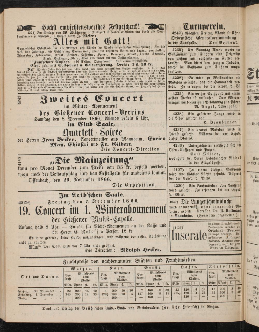 Anzeigeblatt für die Provinzialhauptstadt Gießen. 1840-1867