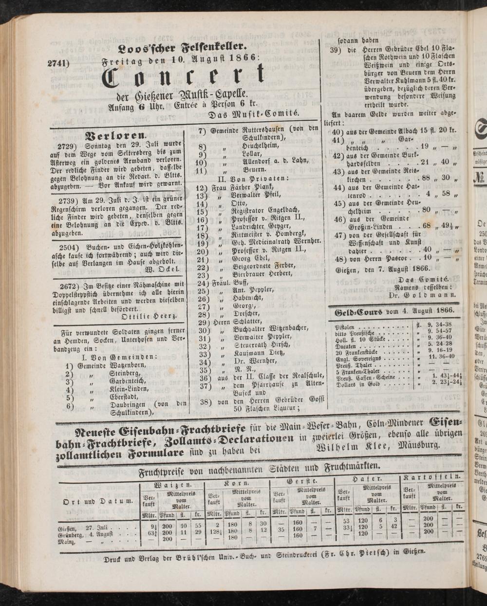 Anzeigeblatt für die Provinzialhauptstadt Gießen. 1840-1867