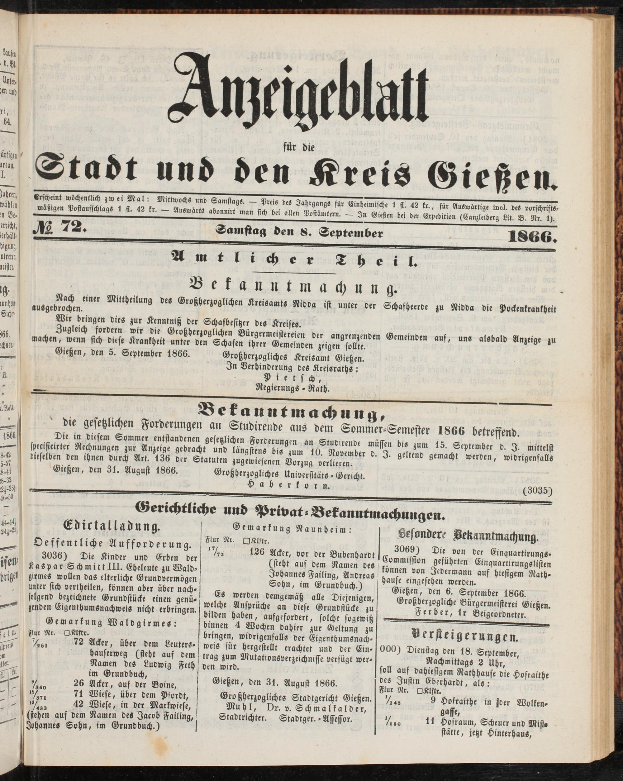 Anzeigeblatt für die Provinzialhauptstadt Gießen. 1840-1867