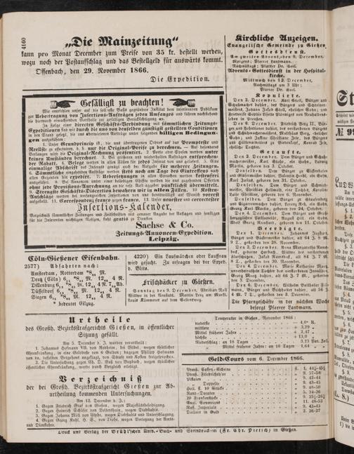 Anzeigeblatt für die Provinzialhauptstadt Gießen. 1840-1867