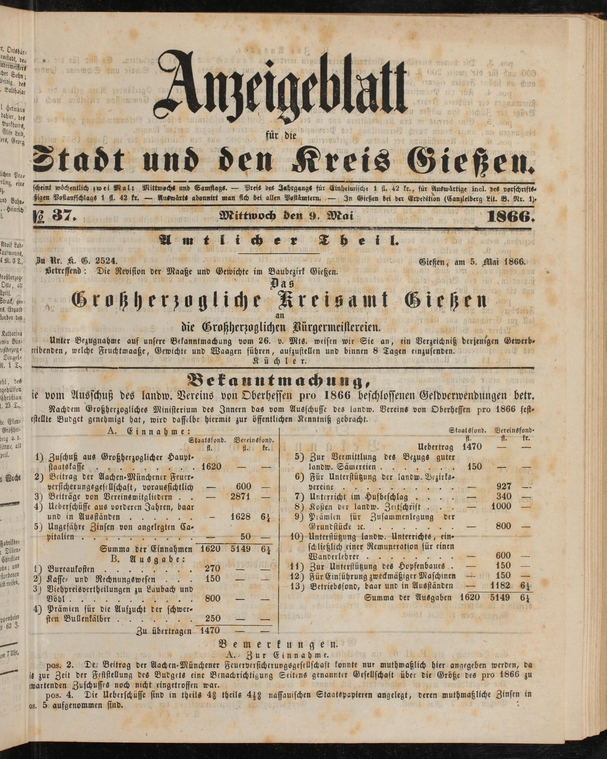 Anzeigeblatt für die Provinzialhauptstadt Gießen. 1840-1867