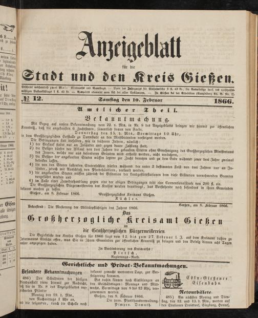 Anzeigeblatt für die Provinzialhauptstadt Gießen. 1840-1867