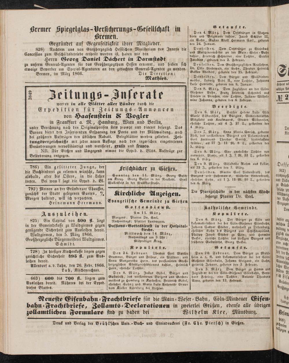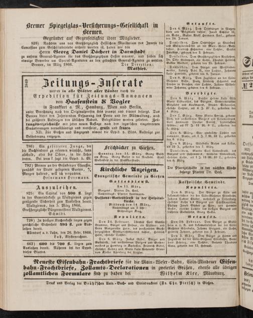 Anzeigeblatt für die Provinzialhauptstadt Gießen. 1840-1867