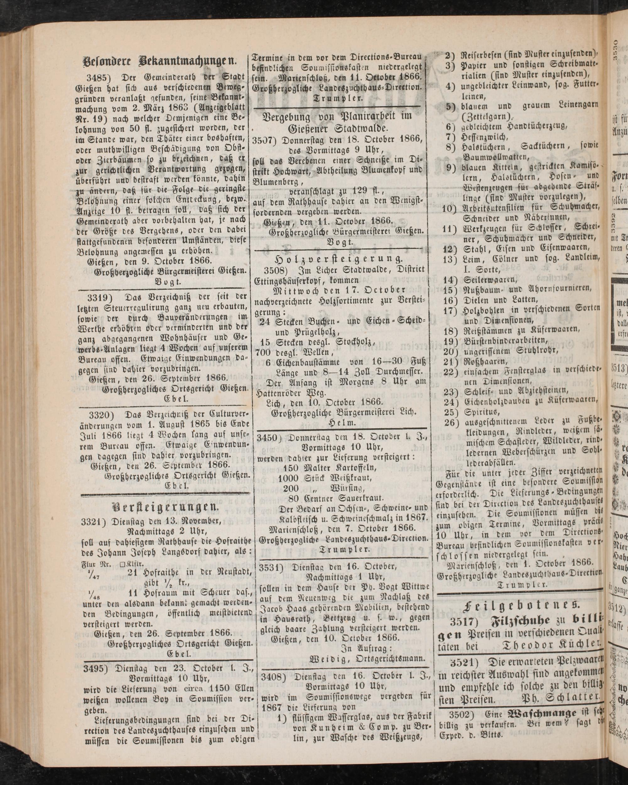 Anzeigeblatt für die Provinzialhauptstadt Gießen. 1840-1867