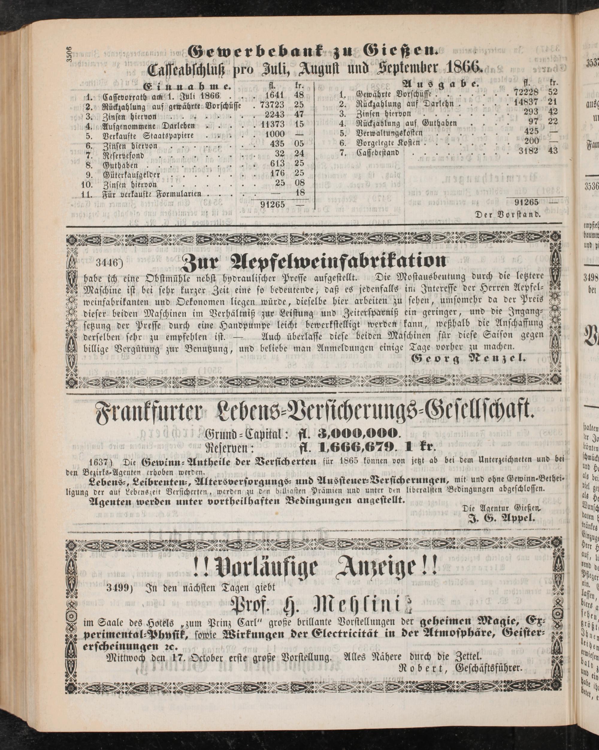 Anzeigeblatt für die Provinzialhauptstadt Gießen. 1840-1867