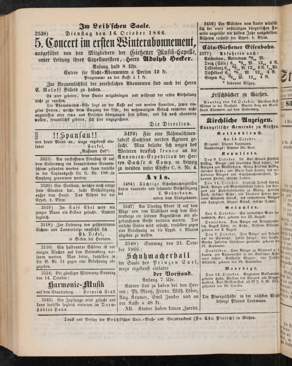 Anzeigeblatt für die Provinzialhauptstadt Gießen. 1840-1867