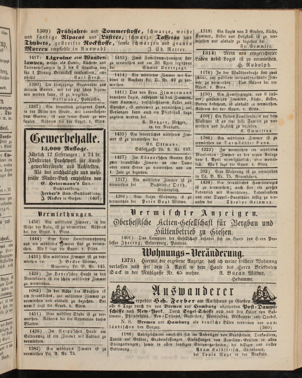 Anzeigeblatt für die Provinzialhauptstadt Gießen. 1840-1867