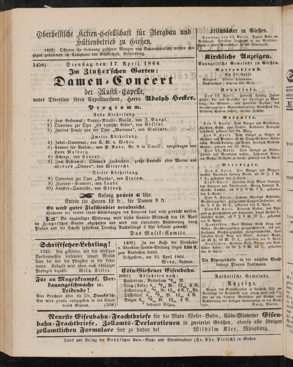 Anzeigeblatt für die Provinzialhauptstadt Gießen. 1840-1867