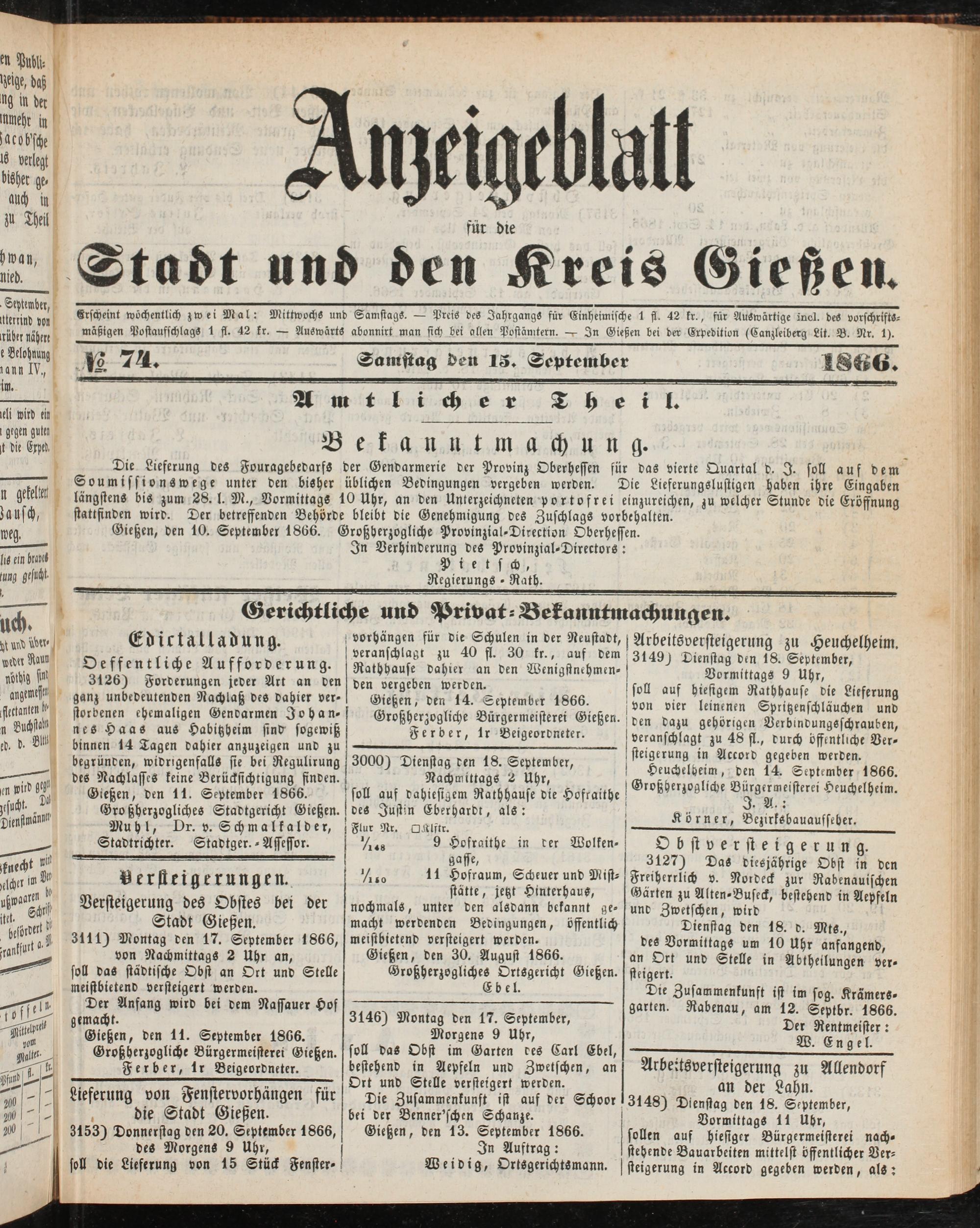 Anzeigeblatt für die Provinzialhauptstadt Gießen. 1840-1867