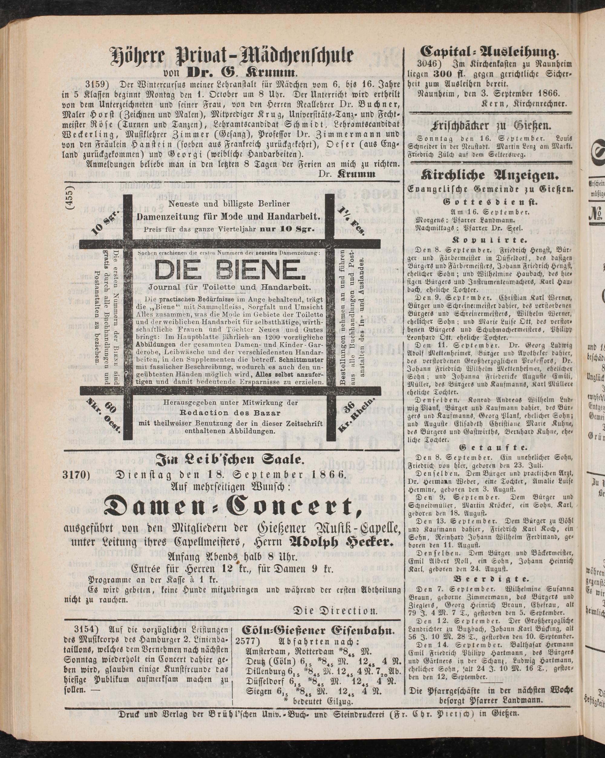 Anzeigeblatt für die Provinzialhauptstadt Gießen. 1840-1867