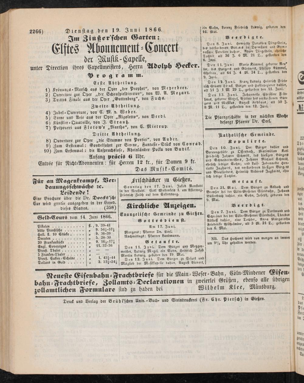 Anzeigeblatt für die Provinzialhauptstadt Gießen. 1840-1867
