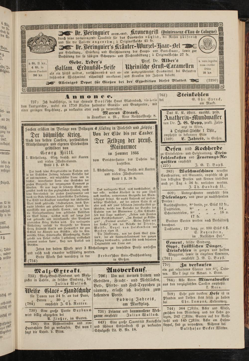 Anzeigeblatt für die Provinzialhauptstadt Gießen. 1840-1867