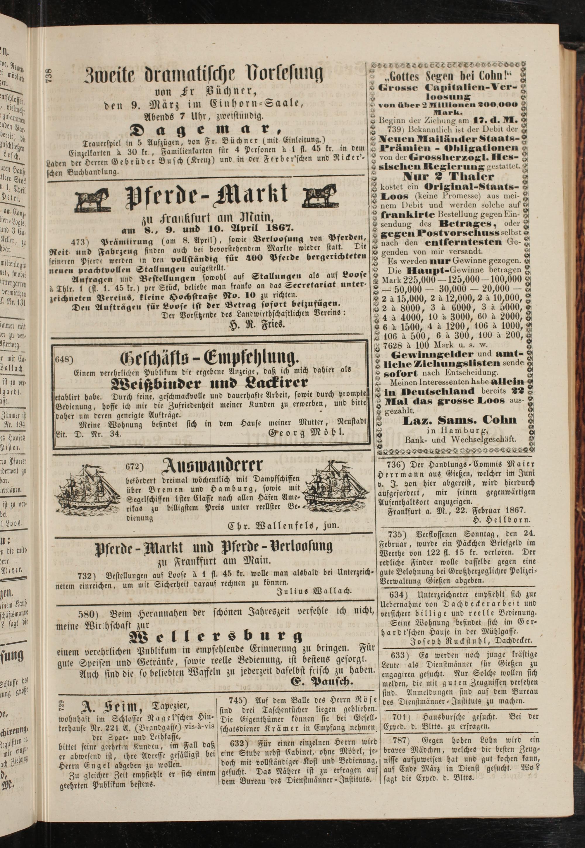 Anzeigeblatt für die Provinzialhauptstadt Gießen. 1840-1867