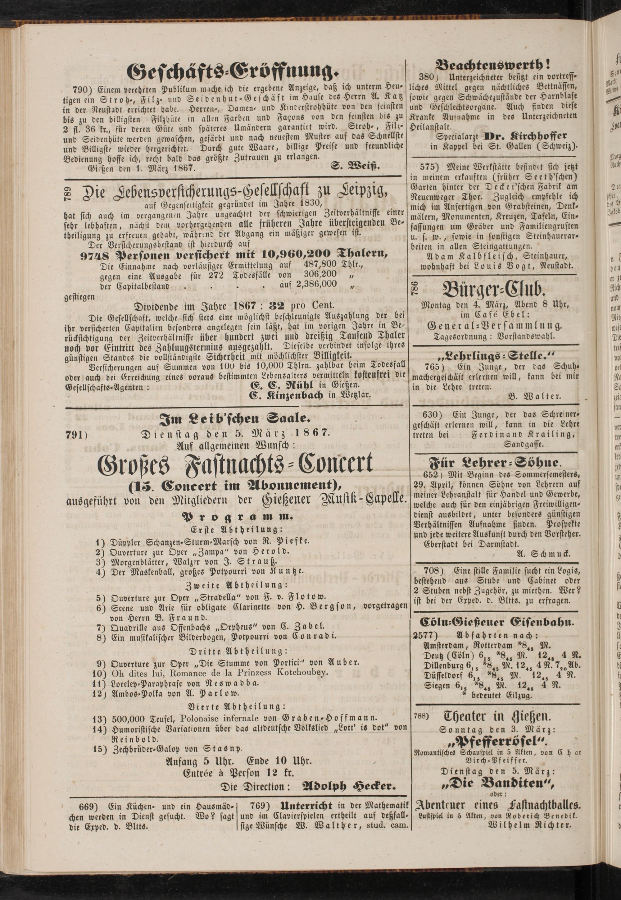 Anzeigeblatt für die Provinzialhauptstadt Gießen. 1840-1867
