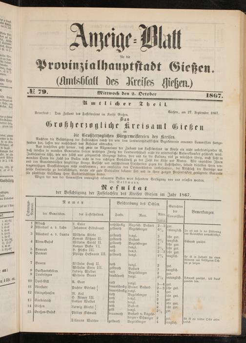 Anzeigeblatt für die Provinzialhauptstadt Gießen. 1840-1867