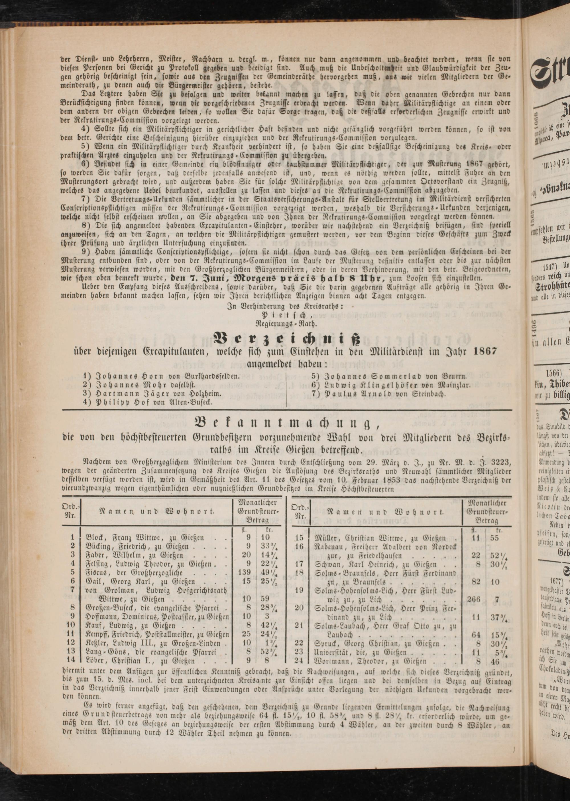 Anzeigeblatt für die Provinzialhauptstadt Gießen. 1840-1867