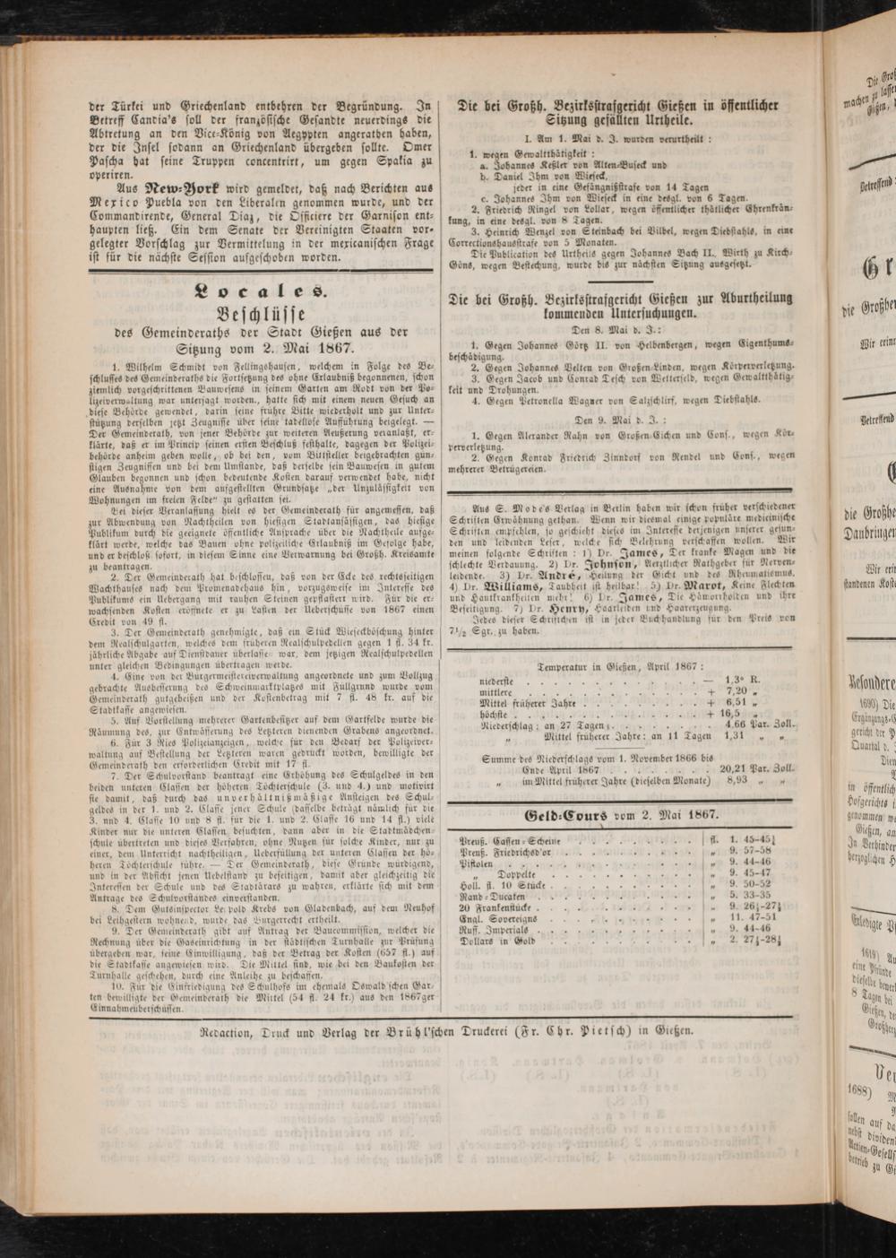 Anzeigeblatt für die Provinzialhauptstadt Gießen. 1840-1867
