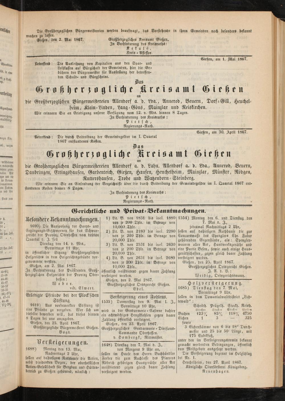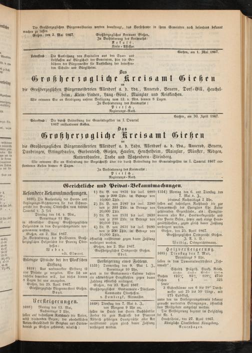 Anzeigeblatt für die Provinzialhauptstadt Gießen. 1840-1867