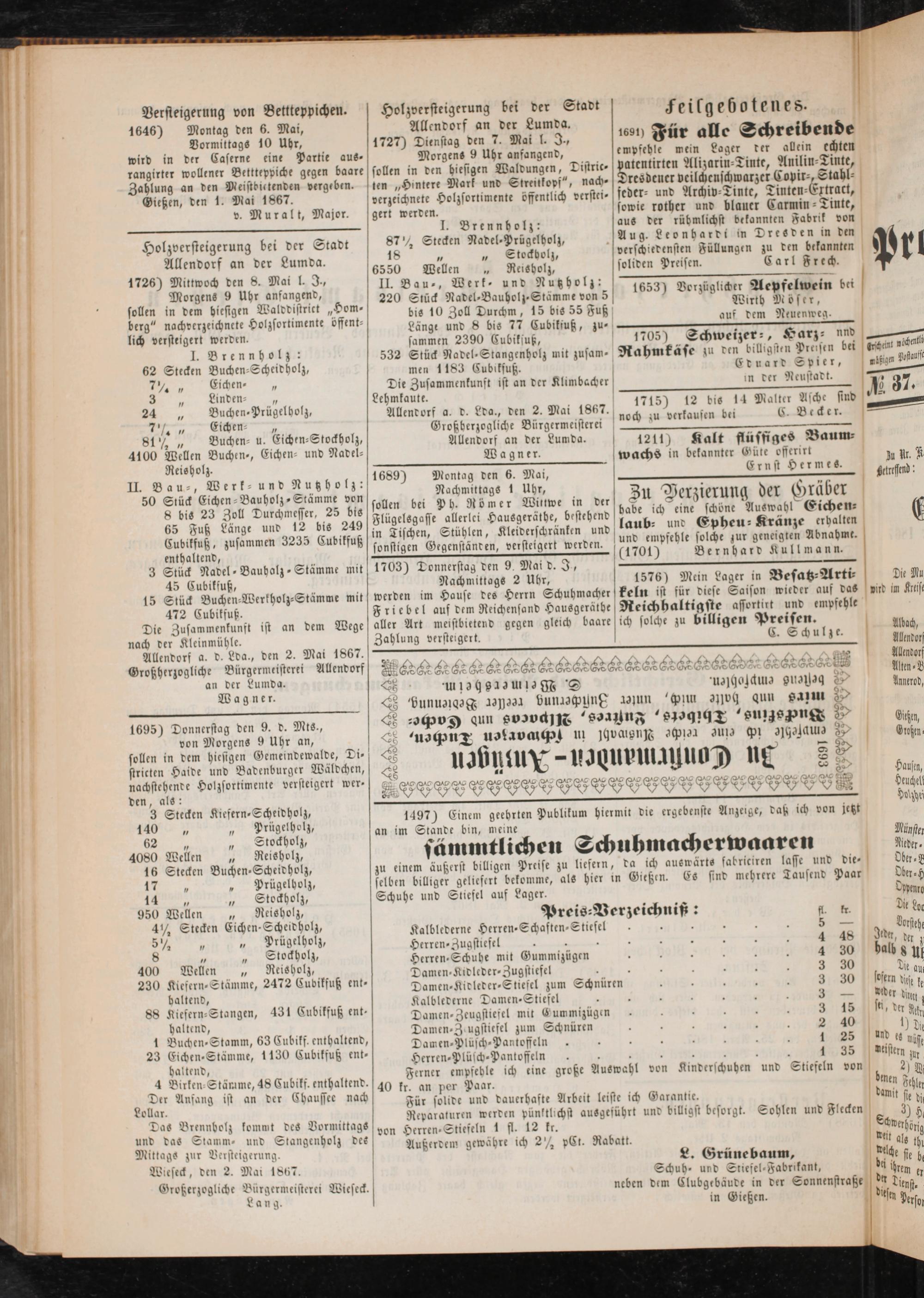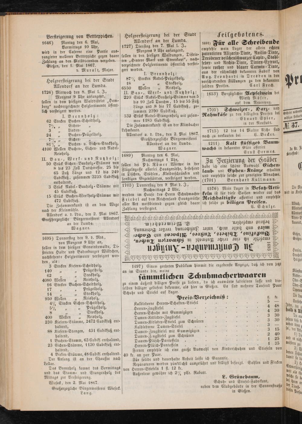 Anzeigeblatt für die Provinzialhauptstadt Gießen. 1840-1867