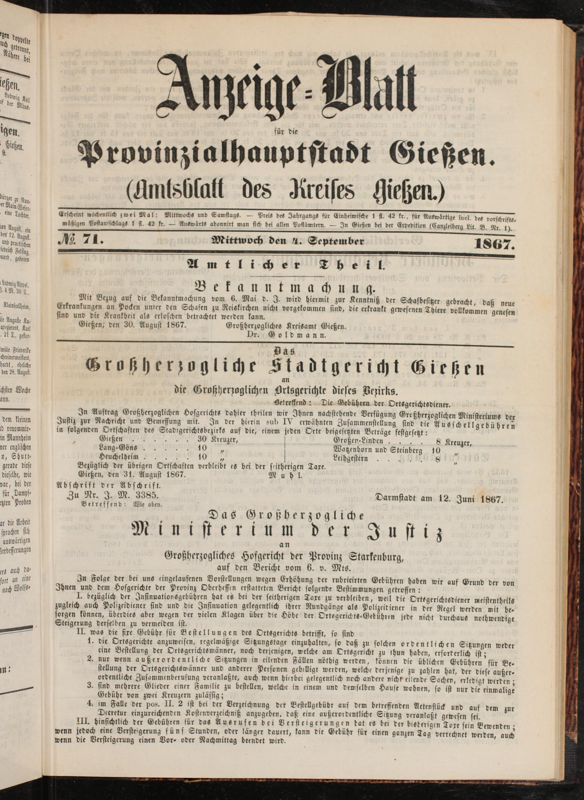 Anzeigeblatt für die Provinzialhauptstadt Gießen. 1840-1867