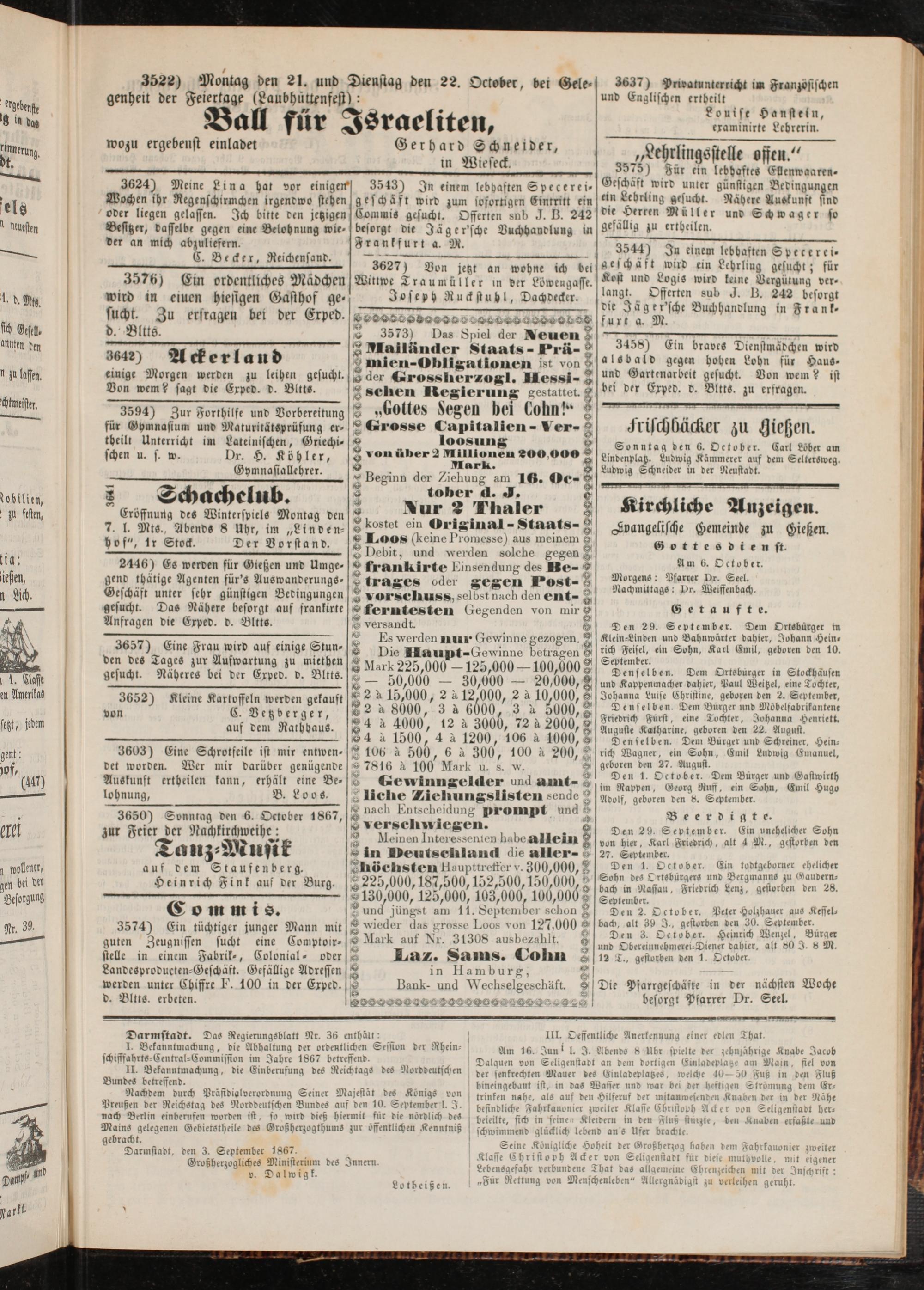 Anzeigeblatt für die Provinzialhauptstadt Gießen. 1840-1867