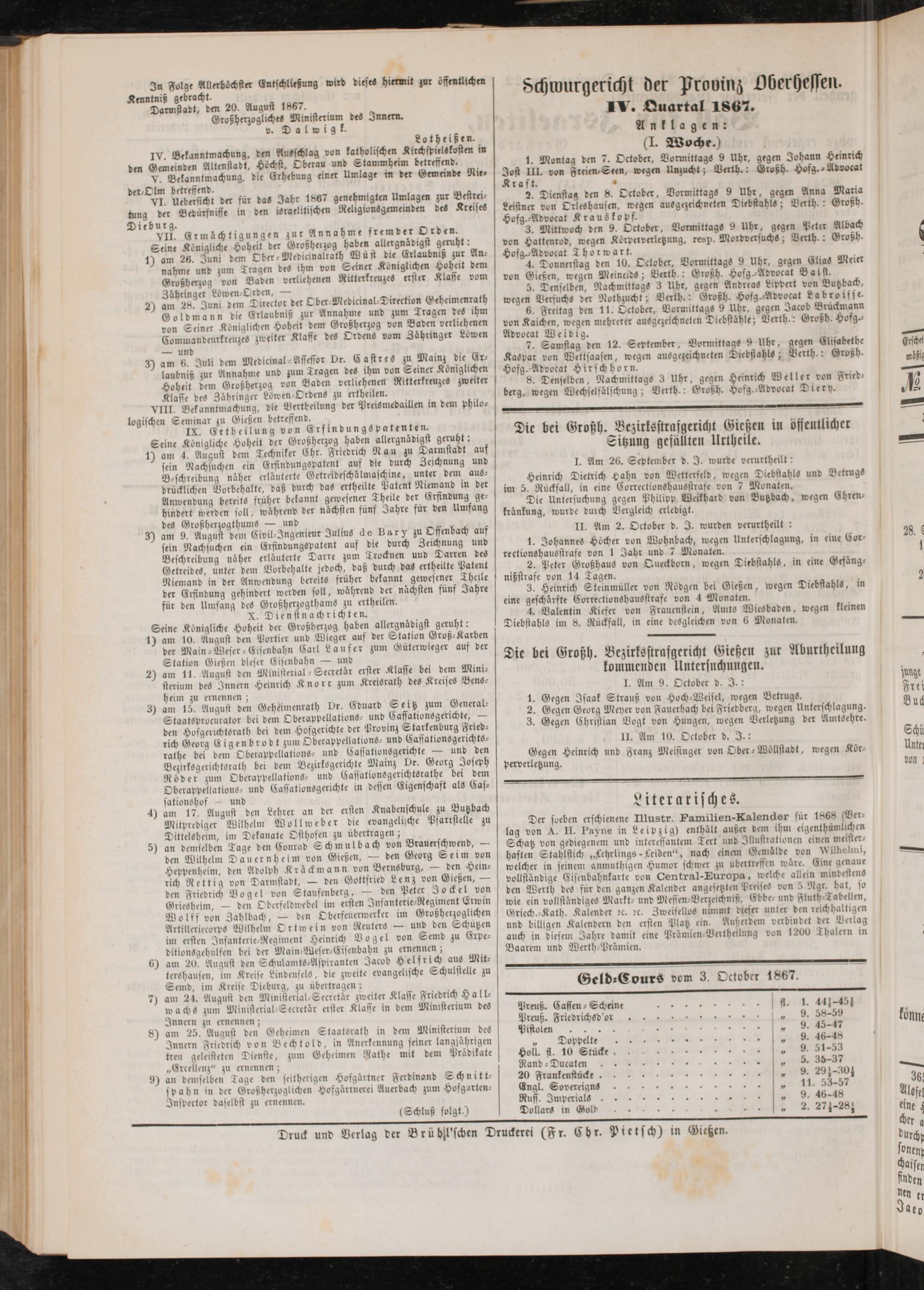 Anzeigeblatt für die Provinzialhauptstadt Gießen. 1840-1867
