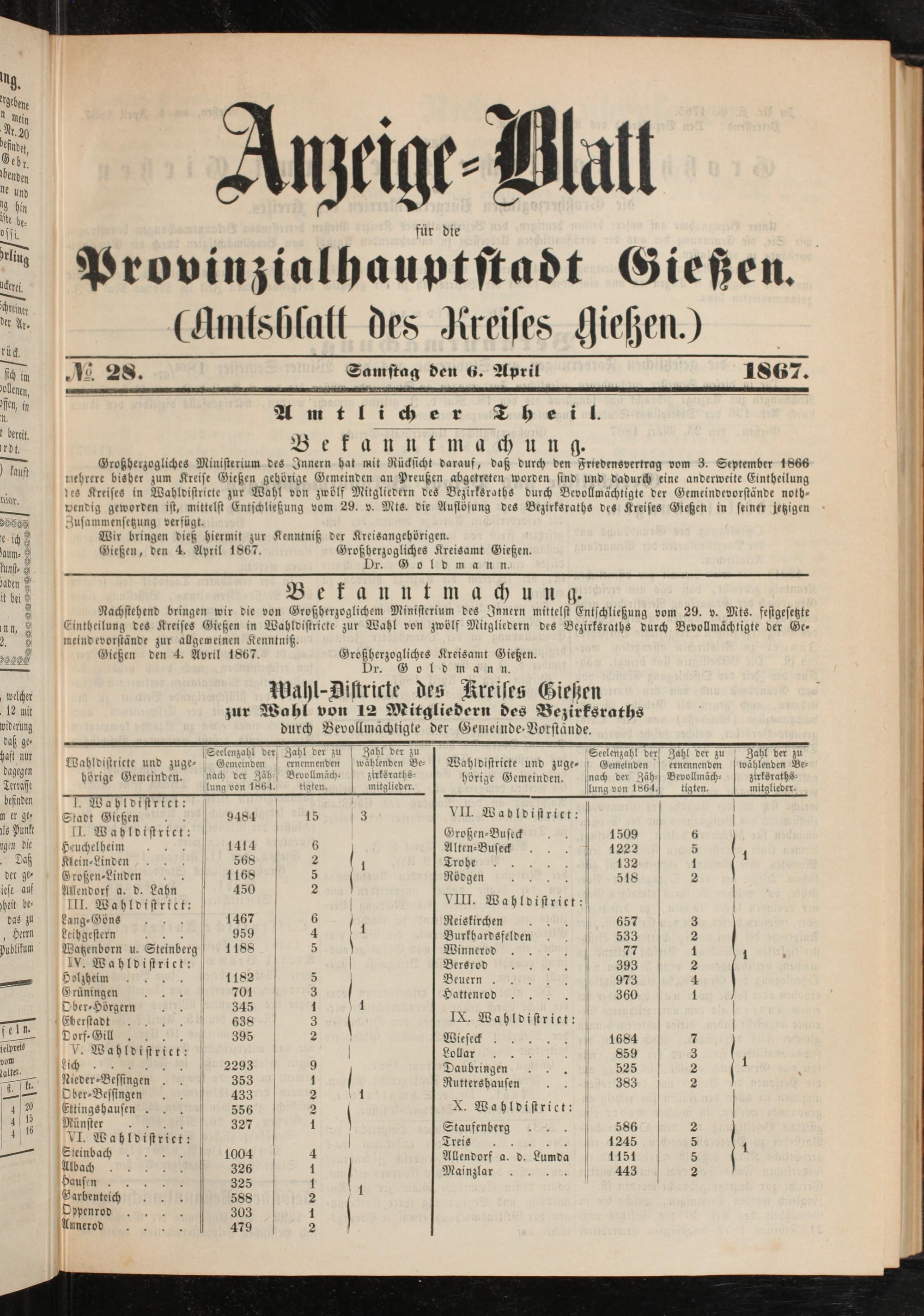 Anzeigeblatt für die Provinzialhauptstadt Gießen. 1840-1867