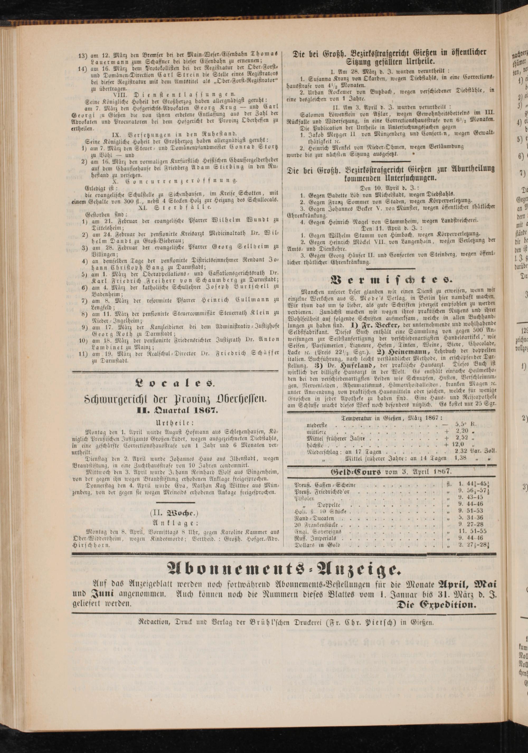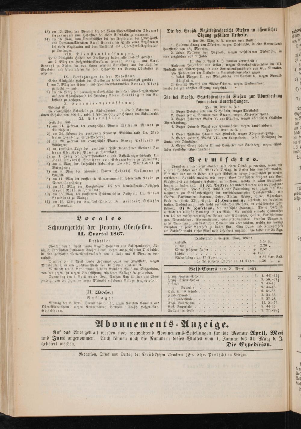 Anzeigeblatt für die Provinzialhauptstadt Gießen. 1840-1867