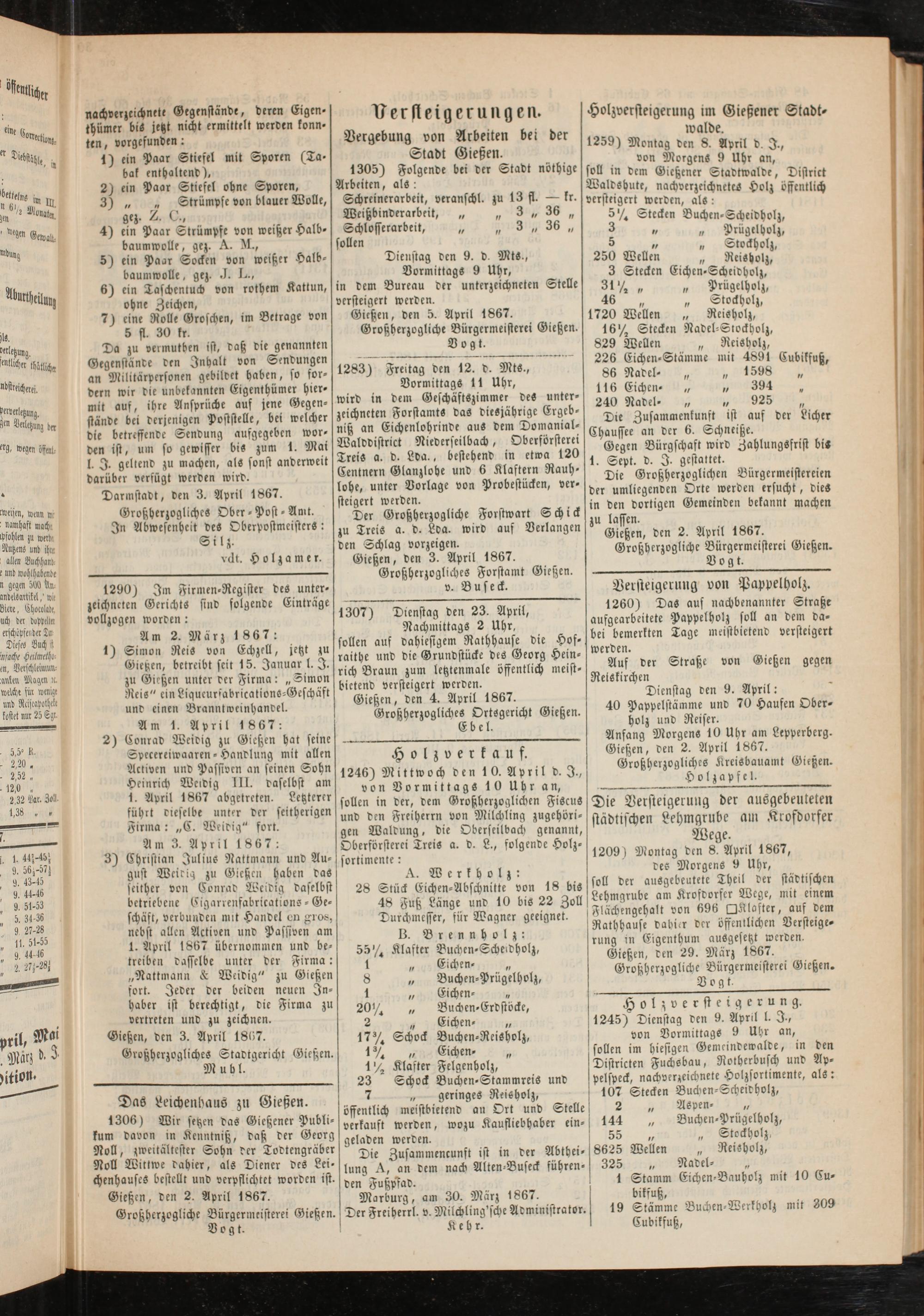 Anzeigeblatt für die Provinzialhauptstadt Gießen. 1840-1867
