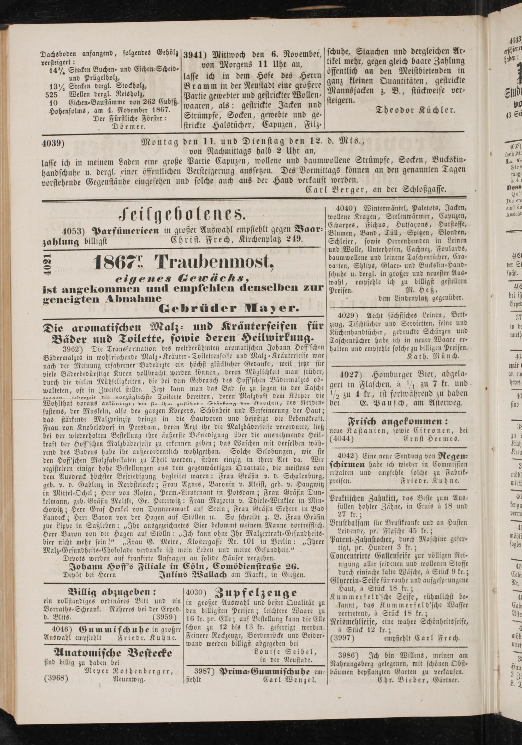 Anzeigeblatt für die Provinzialhauptstadt Gießen. 1840-1867