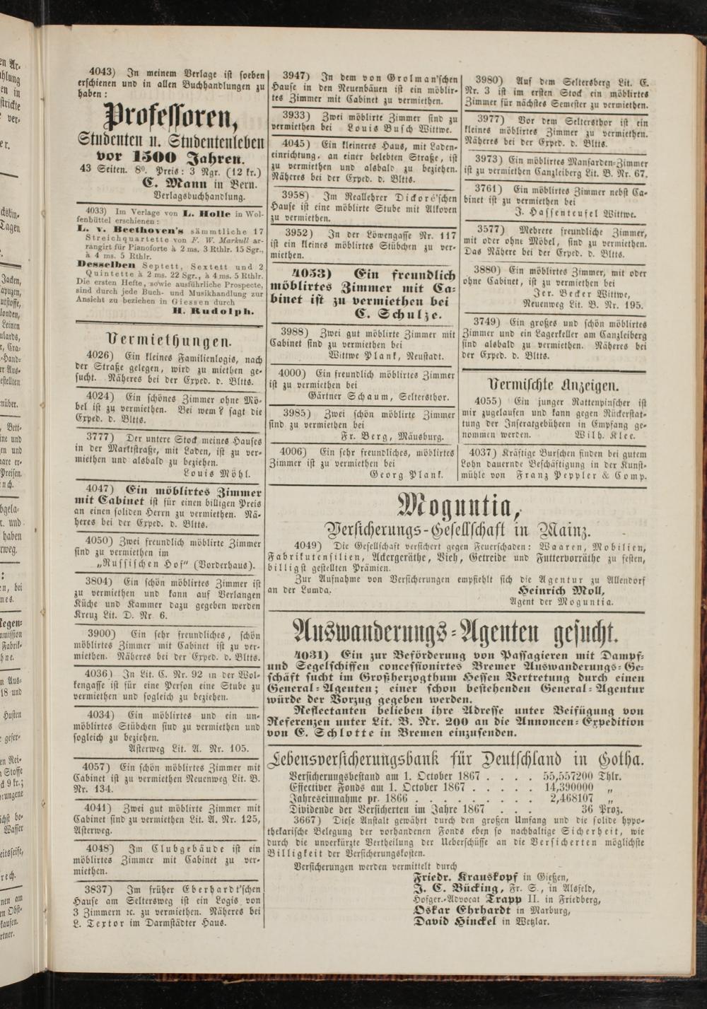 Anzeigeblatt für die Provinzialhauptstadt Gießen. 1840-1867