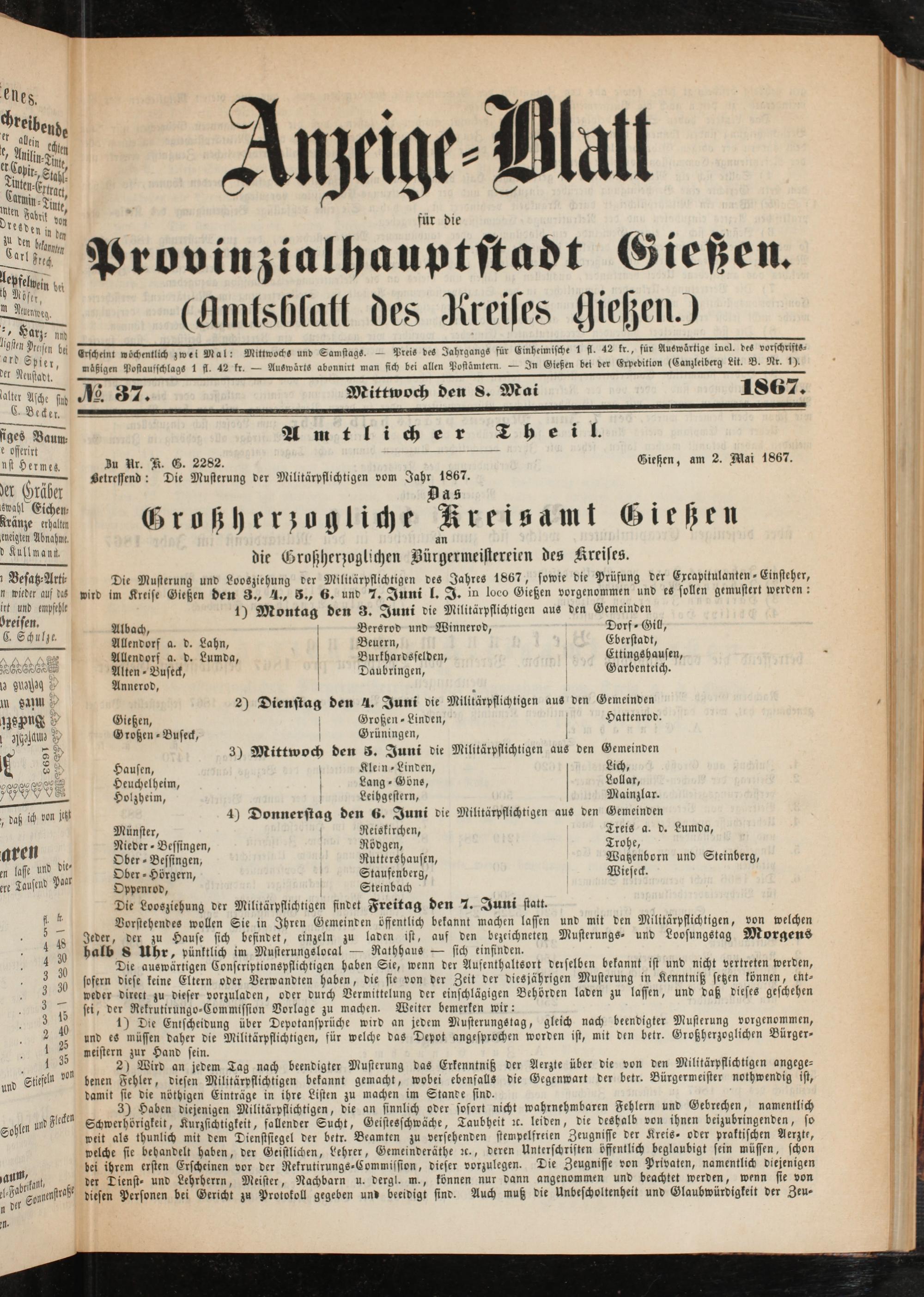 Anzeigeblatt für die Provinzialhauptstadt Gießen. 1840-1867