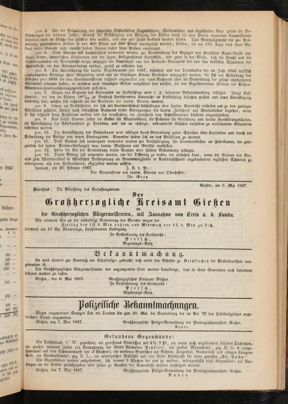 Anzeigeblatt für die Provinzialhauptstadt Gießen. 1840-1867