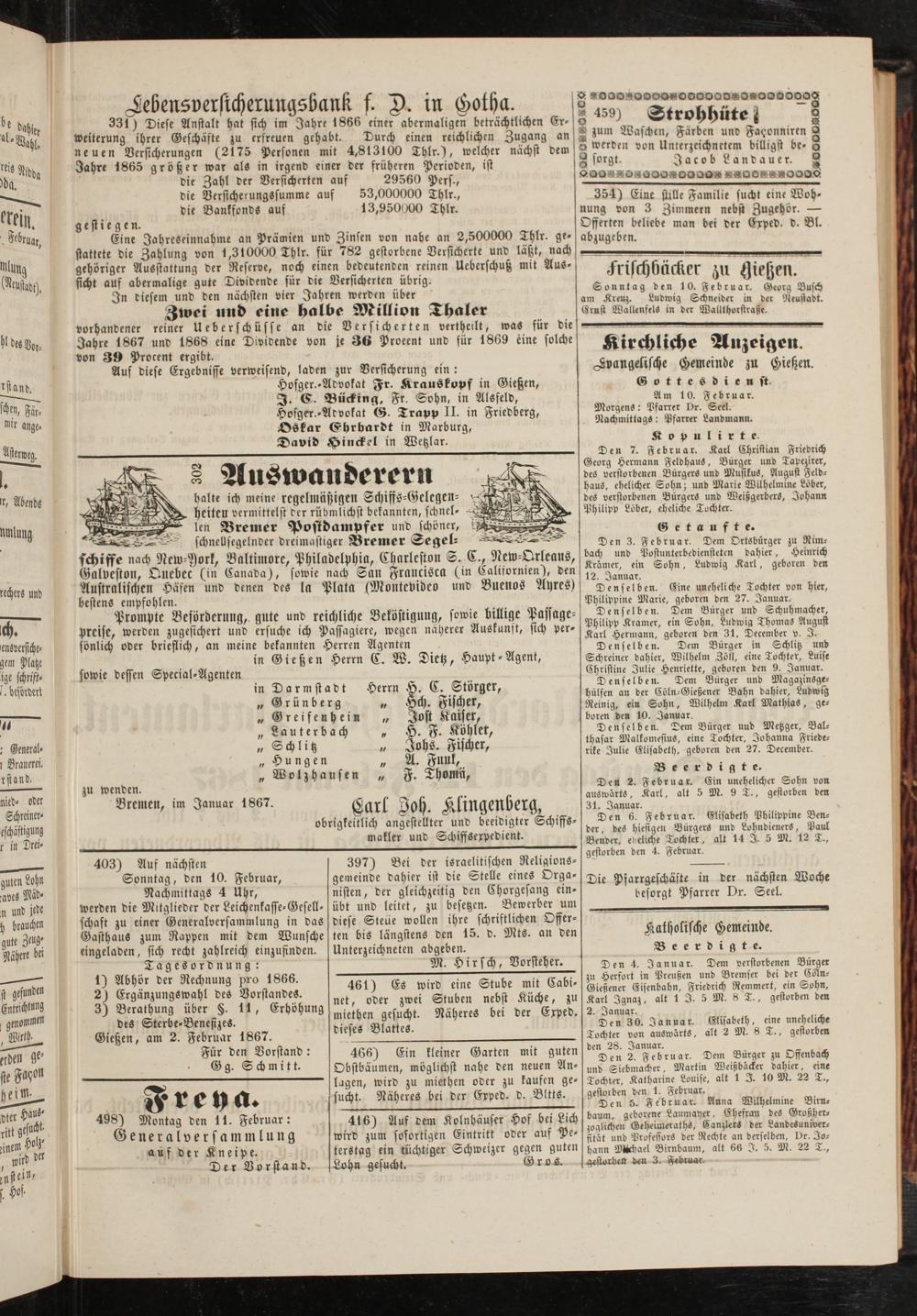 Anzeigeblatt für die Provinzialhauptstadt Gießen. 1840-1867