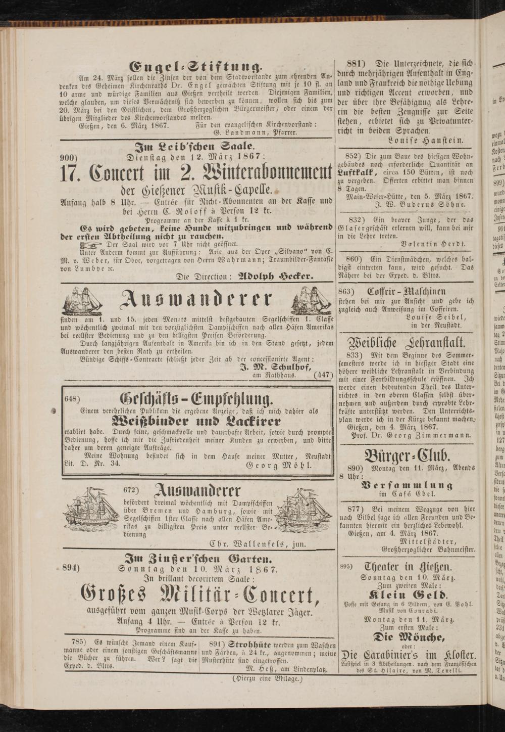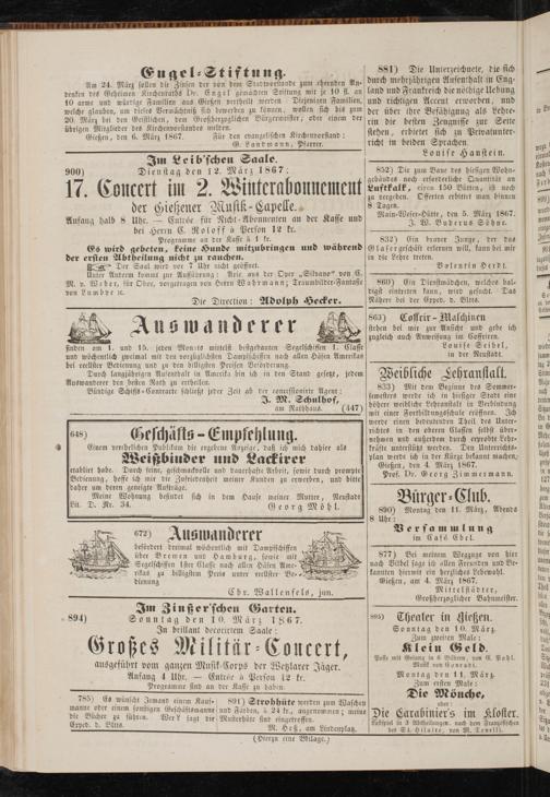 Anzeigeblatt für die Provinzialhauptstadt Gießen. 1840-1867