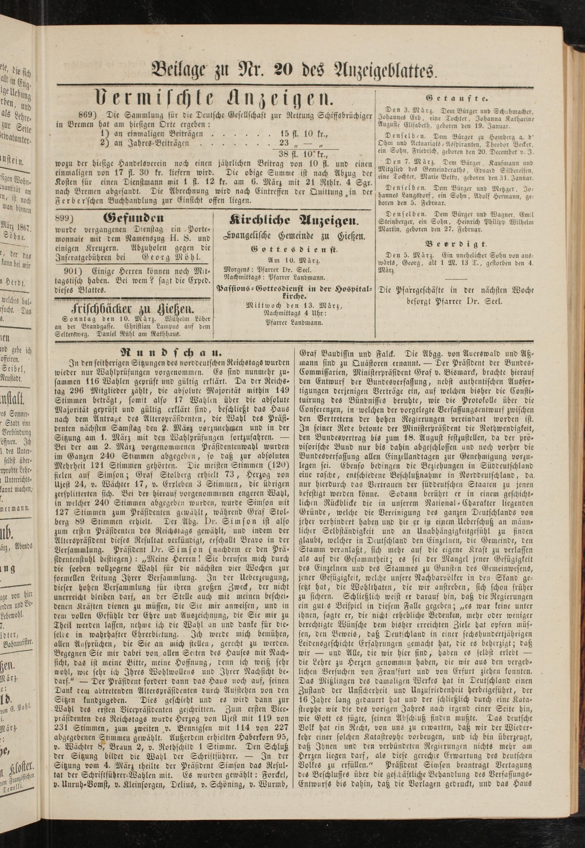 Anzeigeblatt für die Provinzialhauptstadt Gießen. 1840-1867