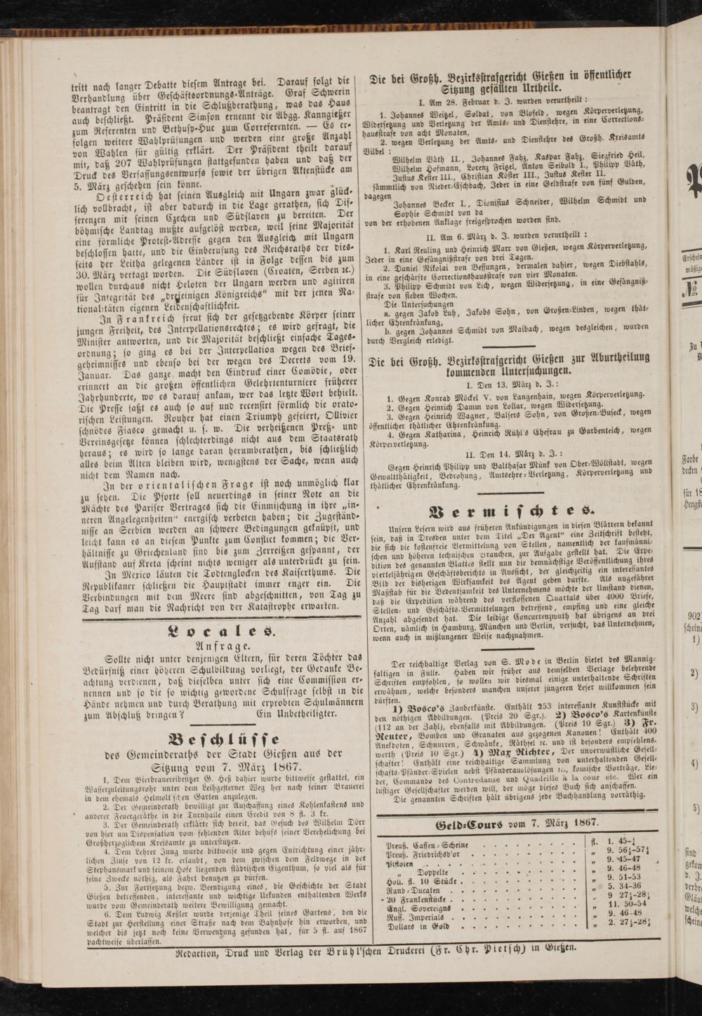 Anzeigeblatt für die Provinzialhauptstadt Gießen. 1840-1867