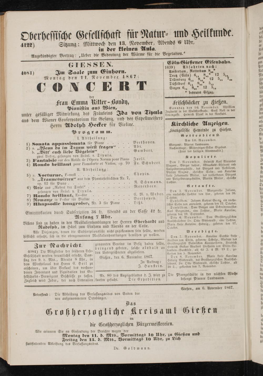 Anzeigeblatt für die Provinzialhauptstadt Gießen. 1840-1867