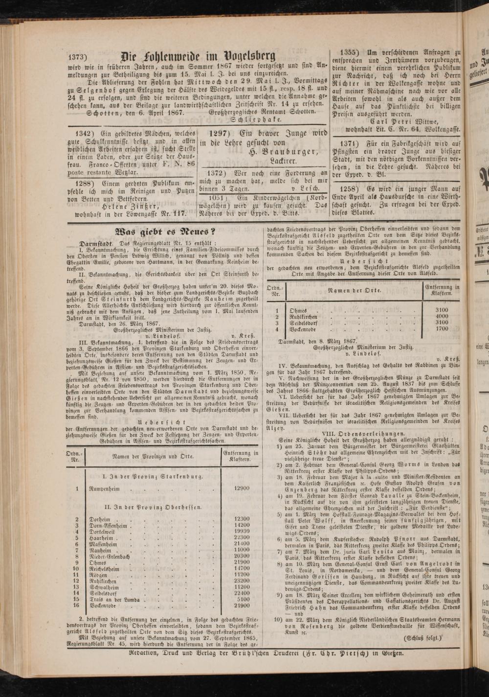 Anzeigeblatt für die Provinzialhauptstadt Gießen. 1840-1867