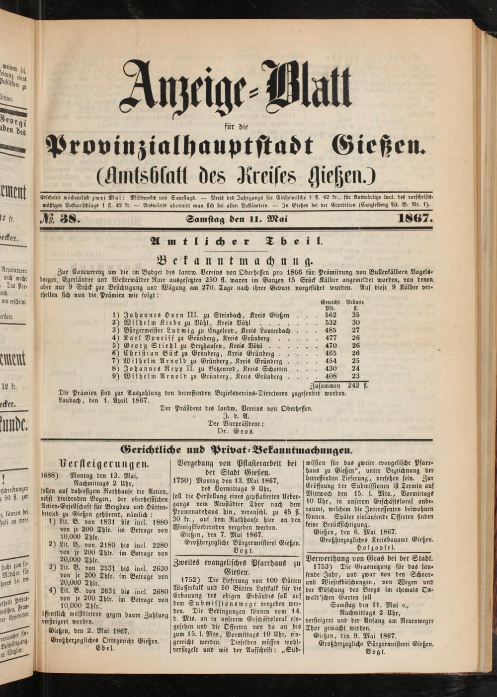 Anzeigeblatt für die Provinzialhauptstadt Gießen. 1840-1867