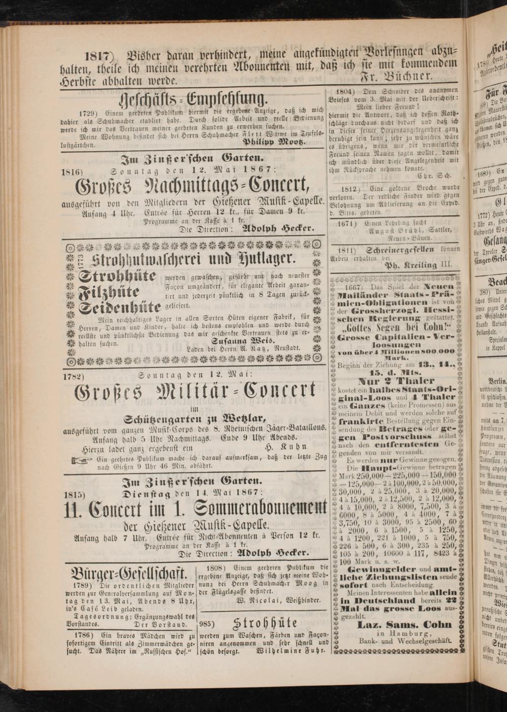 Anzeigeblatt für die Provinzialhauptstadt Gießen. 1840-1867