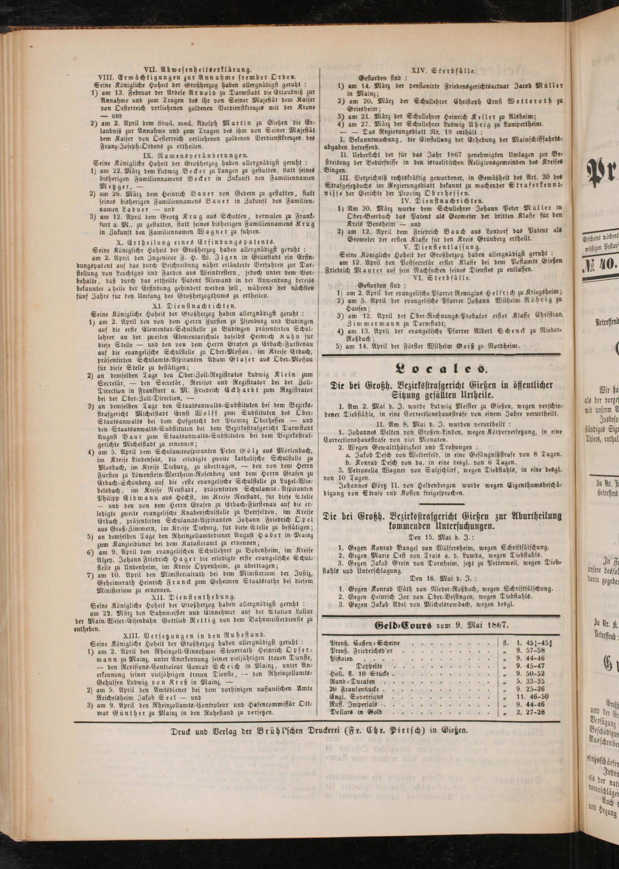Anzeigeblatt für die Provinzialhauptstadt Gießen. 1840-1867