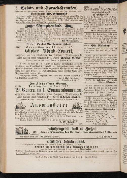 Anzeigeblatt für die Provinzialhauptstadt Gießen. 1840-1867