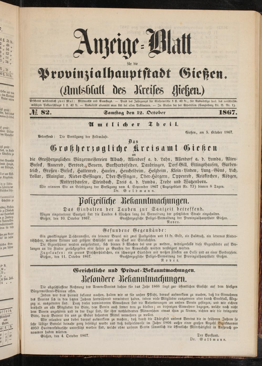 Anzeigeblatt für die Provinzialhauptstadt Gießen. 1840-1867