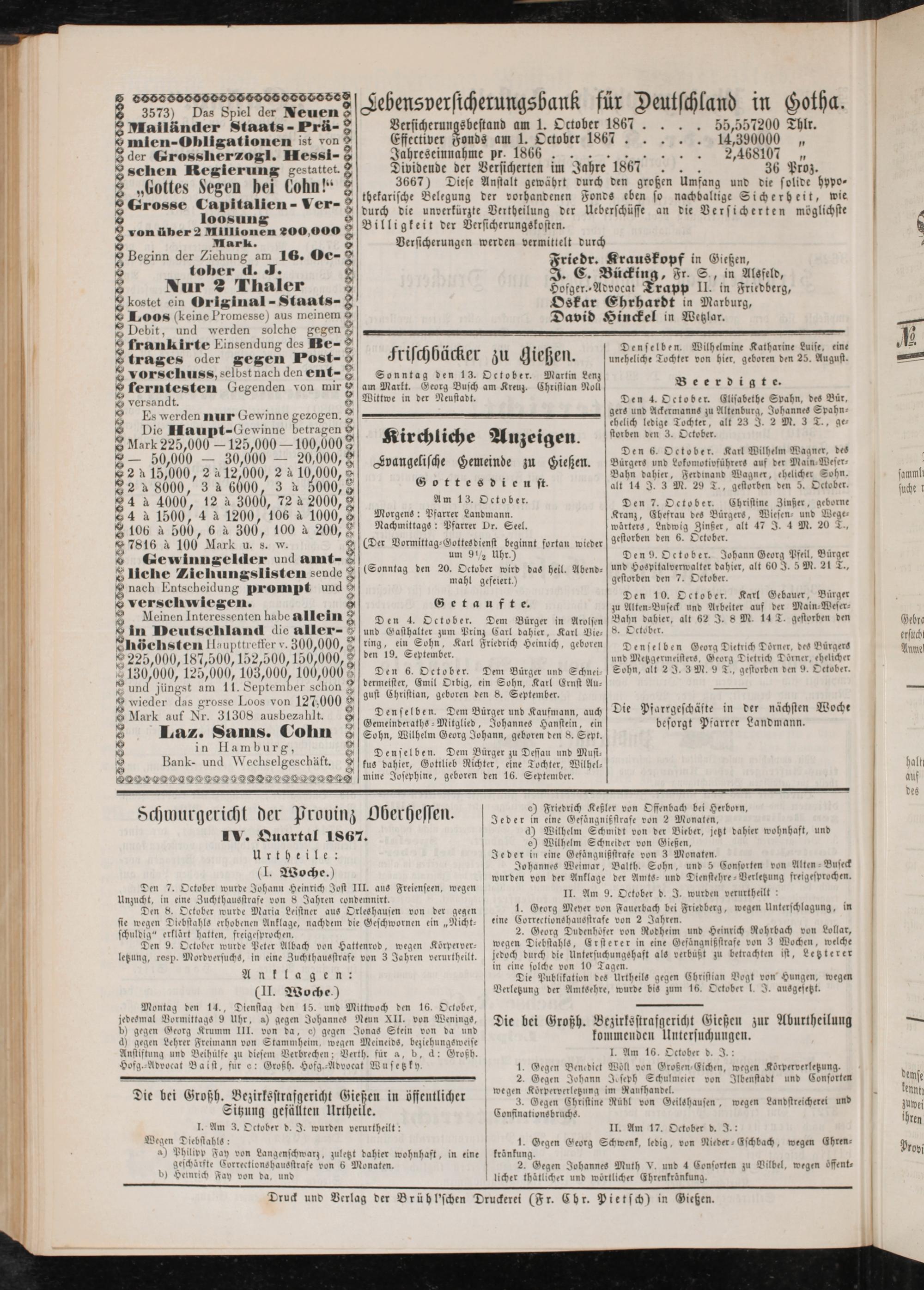 Anzeigeblatt für die Provinzialhauptstadt Gießen. 1840-1867