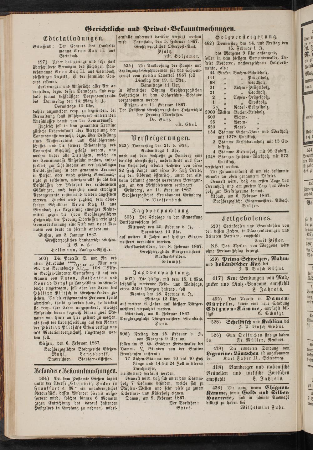 Anzeigeblatt für die Provinzialhauptstadt Gießen. 1840-1867
