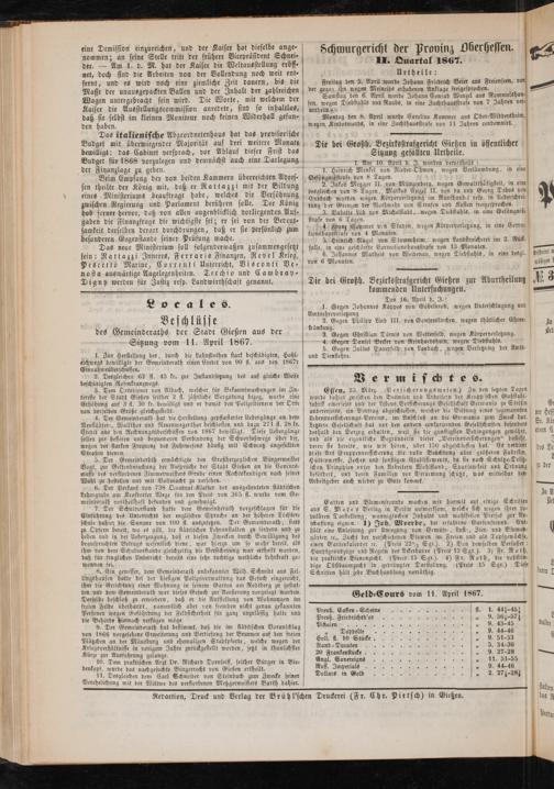 Anzeigeblatt für die Provinzialhauptstadt Gießen. 1840-1867