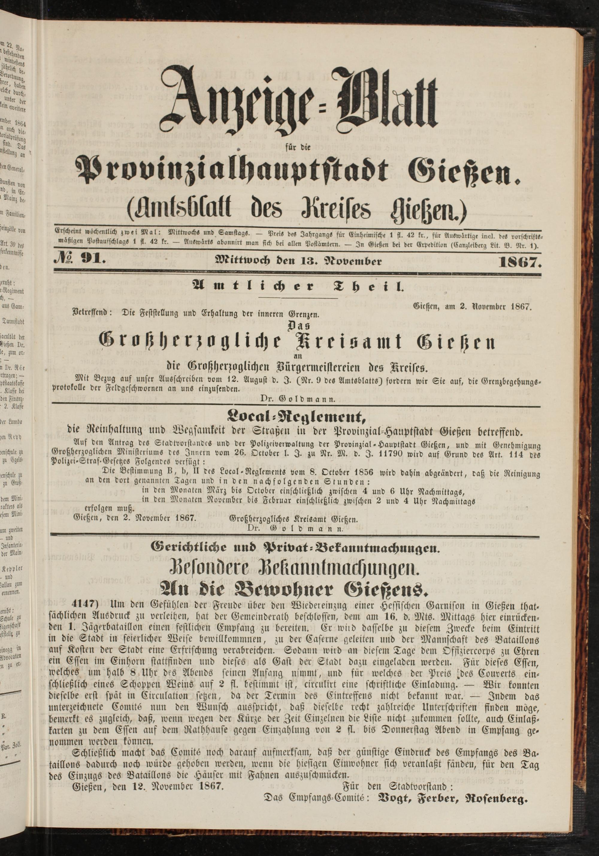 Anzeigeblatt für die Provinzialhauptstadt Gießen. 1840-1867