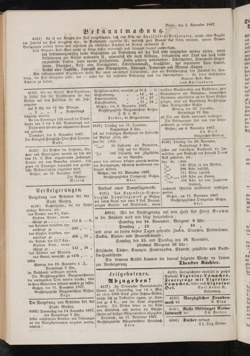 Anzeigeblatt für die Provinzialhauptstadt Gießen. 1840-1867