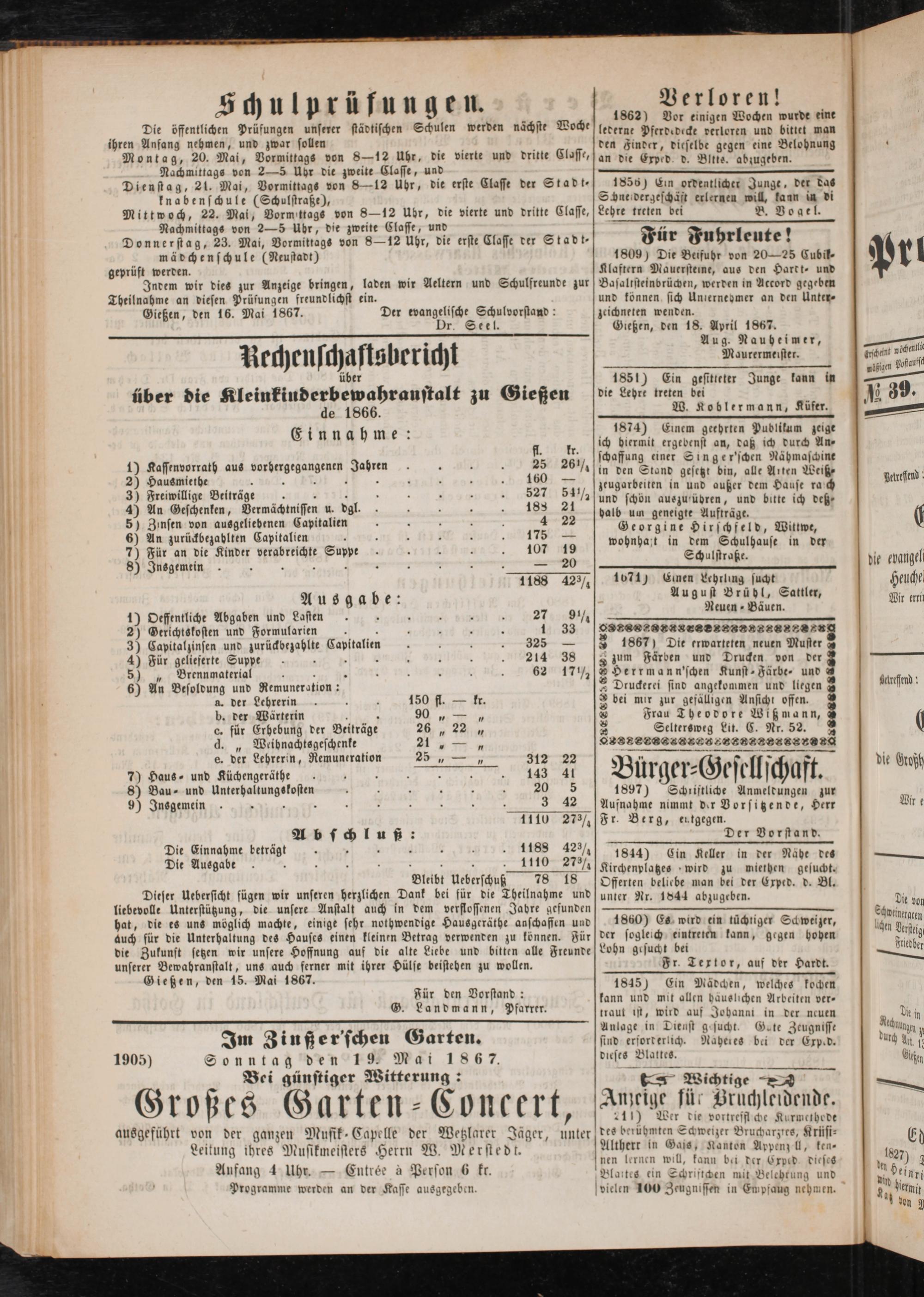 Anzeigeblatt für die Provinzialhauptstadt Gießen. 1840-1867